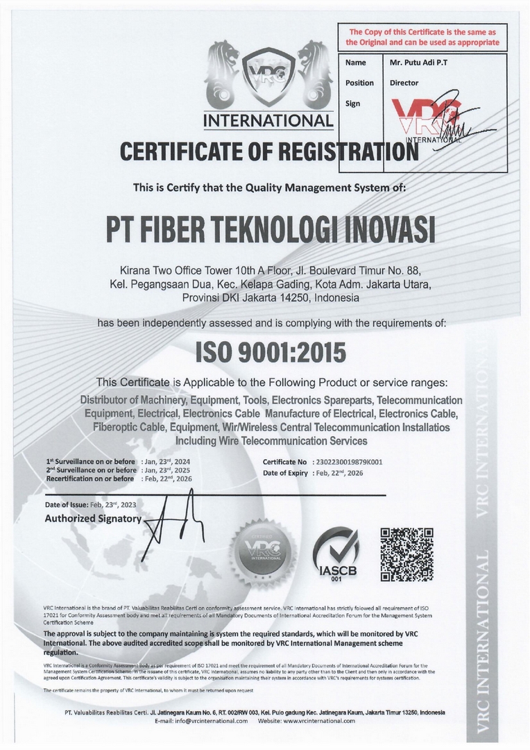 PT FIBER TEKNOLOGI INOVASI adalah perusahaan di bidang jasa konstruksi jaringan dan perdagangan umum.
