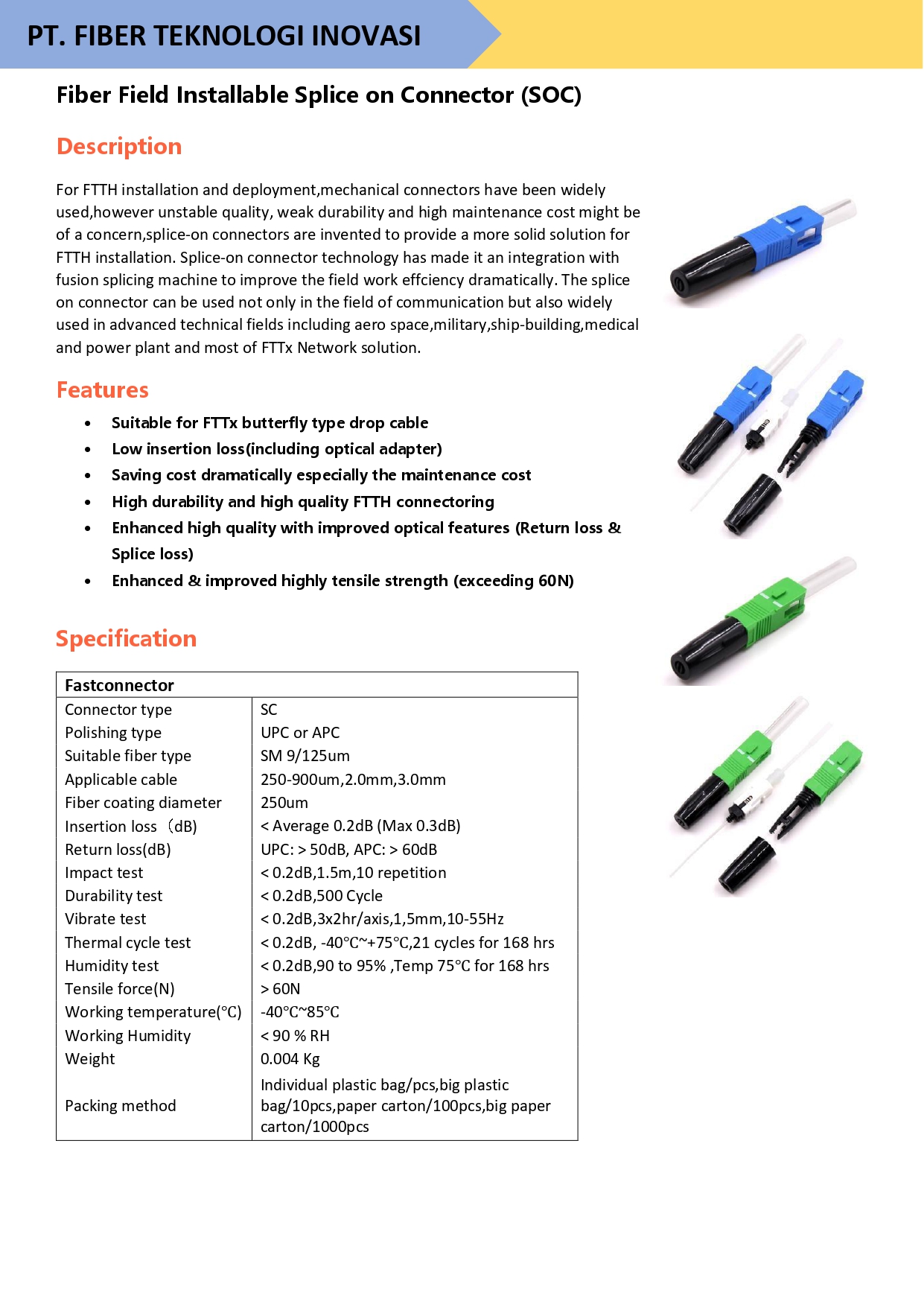 For FTTH installation and deployment,mechanical connectors have been widely used,however unstable quality, weak durability and high maintenance cost might be of a concern,splice-on connectors are invented to provide a more solid solution for FTTH installation.